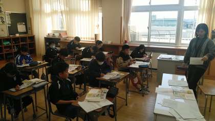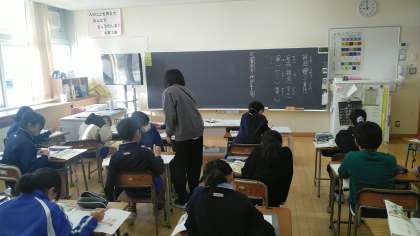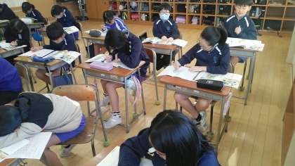4年2組の1時間目は、国語科の学習でした。「漢字の広場」の学習で、絵の中の漢字を使って文章をつくっていました。