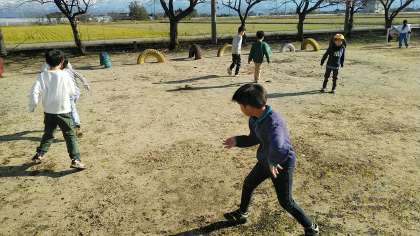 日光が出て暖かかったので、グラウンドで遊んでいる子供も多かったです。