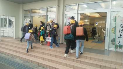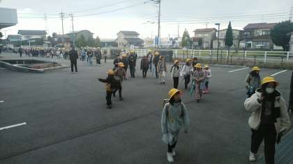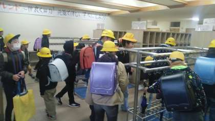 今朝の児童玄関の様子です。曇り空で、ちょっぴり寒い朝です。いつも元気な子供たちは、今日も元気です。