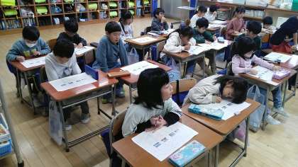 1年生の1時間目は、国語科の学習でした。学習のたしかめの直しをみんなでしていました。