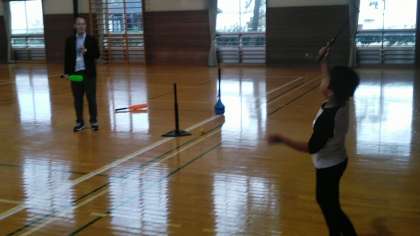 12月4日(水) 1・4年生 フラフープ&バドミントン