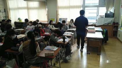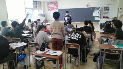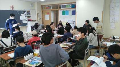 6年生の5時間目は、社会科の学習でした。先生の出す問題に答えていました。