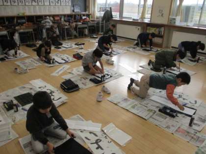 準備の仕方を確認して、初めて「つよい心」と書きました。書き初め大会に向けて、やる気いっぱいで練習しました。
