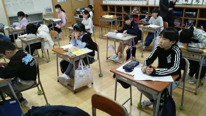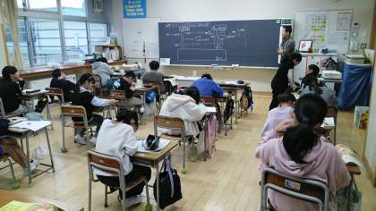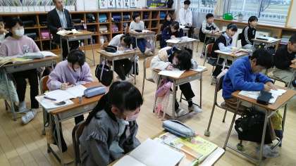 4年1組の1時間目は、理科の学習でした。お湯の中に入れたスプーンがどう変化するかについて話し合っていました。