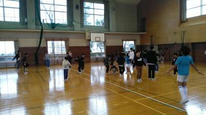 今日のぐんぐんタイムは、雨が降っているので、体育館で縄跳びです。前半の男子の様子です。