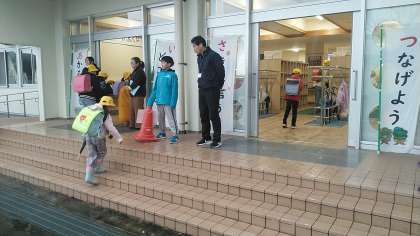 今朝の児童玄関の様子です。雨です。寒い朝です。子供たちの挨拶は元気でした。ポケットに手を入れて歩いている人は、数人だけでした。みんな気を付けてくれているみたいです。