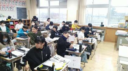 5年生の1時間目は、書写の学習でした。書き初め大会の練習をしていました。