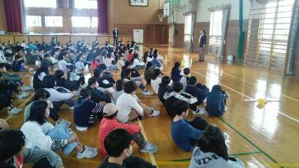 2限と3限の休み時間中に避難訓練を行いました。先日の停電をふまえて、学校が停電中に隣家の火災が起こるという想定で訓練を行いました。放送ではなく、先生方の肉声で避難をしたのですが、みんなちゃんと体育館へ避難することができました。
