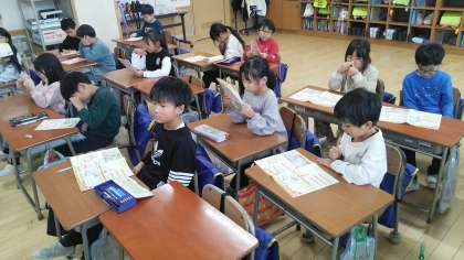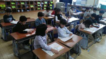 1年生の3時間目は、国語科の学習でした。「年賀状」についてみんなで考えていました。これから実際にかくみたいです。