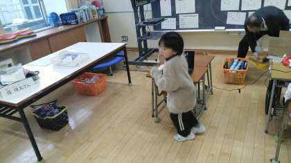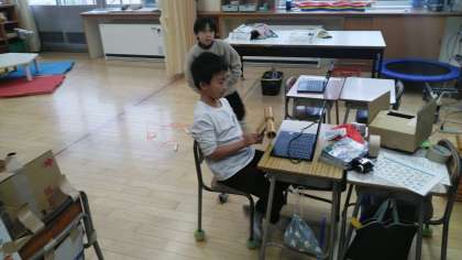 つばめ野級2組の5時間目は、体育科と音楽科の学習でした。ダンスとウッドブロックをしていました。