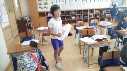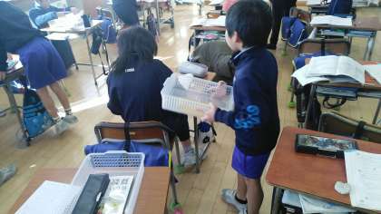 3年生の2時間目は、算数科の学習でした。かごに入れたものの合計が1000gになるようにチャレンジしていました。1位は970gだったそうです。