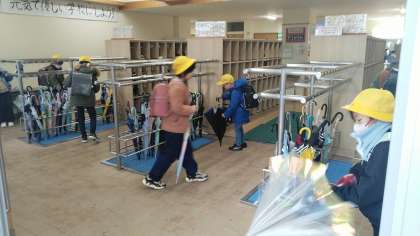 今朝の児童玄関の様子です。雨の日です。寒い朝です。大きな声の挨拶を聞くと、元気をもらえます。ありがとうございます。