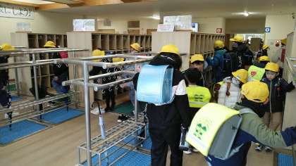 今朝の児童玄関の様子です。日はさしていましたが、寒い朝です。子供たちの挨拶は、元気です。
