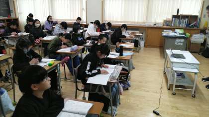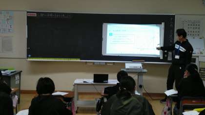 5年生の1時間目は、算数科の学習でした。三角形の面積を求める時に、垂線をおろして高さを求める方法について考えていました。