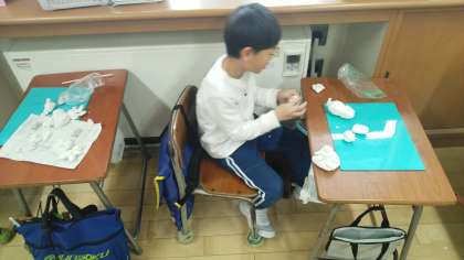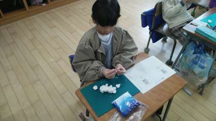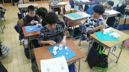 2年生は、2時間目にお話に登場するキャラクターを考えて紙粘土でつくっていました。