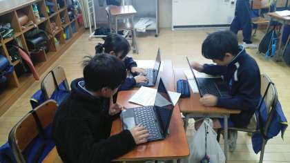 3年生の3時間目は、総合的な学習の時間でした。これまで調べた倉垣のすごいところをクロームブックを使ってまとめていました。