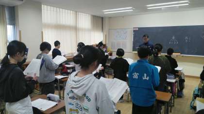 5年生の3時間目は、国語科の学習でした。「春暁」という詩をみんなで音読していました。「春眠暁を覚えず…。」
