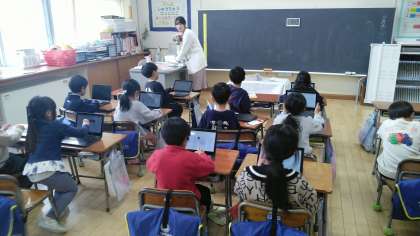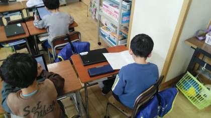 1年生は、5時間目にプリントの直しをしたあと、クロームブックでスマイルドリルを進めていました。