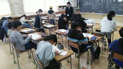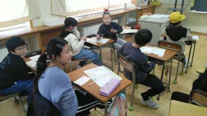 4年2組の5時間目は、年賀状をかく時間でした。お世話になった方にかいていました。