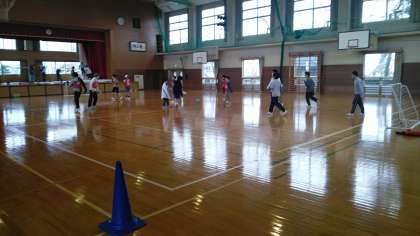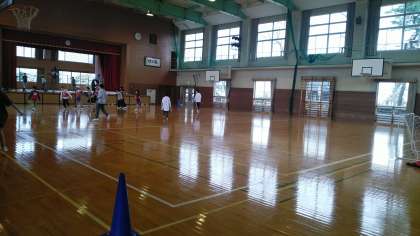 6年生の5時間目は、体育科の学習でした。体育館でサッカーをしていました。