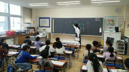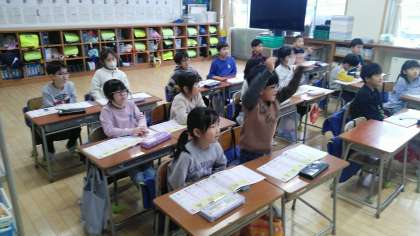 1年生の1時間目は、国語科の学習でした。「町」と「入」という漢字の練習をしていました。