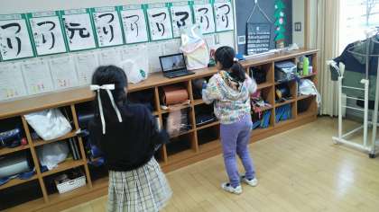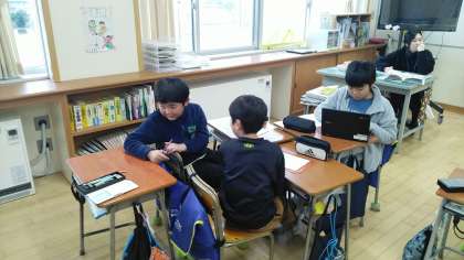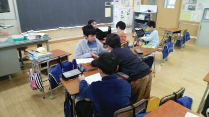3年生は、5時間目に係の仕事をしていました。係ごとに集まって、相談しながら進めていました。