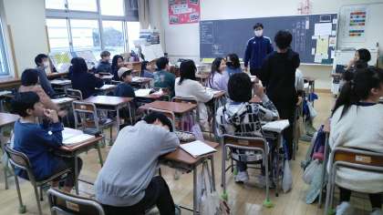6年生の5時間目は、国語科の学習でした。担任の先生と漢字の問題を競っていました。先生に勝てたのかな…。