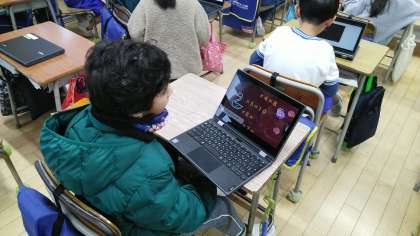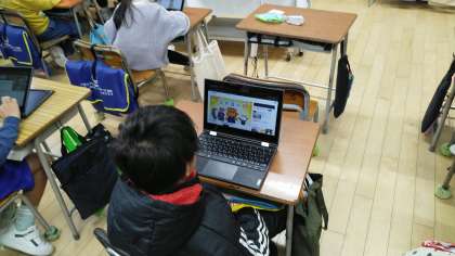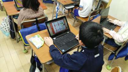 2年生の1時間目は、算数科の学習でした。クロームブックを使って、動画を見ながら苦手な九九の練習をしていました。