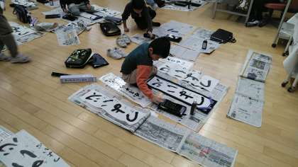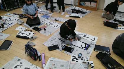 3年生の1時間目は、書写の学習でした。書き初め大会の練習で、「つよい心」という文字の練習をしていました。