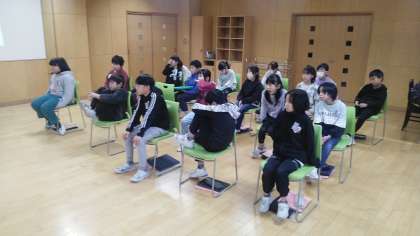 4年生の1時間目は、1組と2組合同で、総合的な学習の時間でした。これまで取り組んできた「環境」と「福祉」というテーマについて振り返りをしていました。