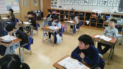 3年生の3時間目は、道徳科の学習でした。「ラーメンでえがおに」というお話を読んで話し合っていました。