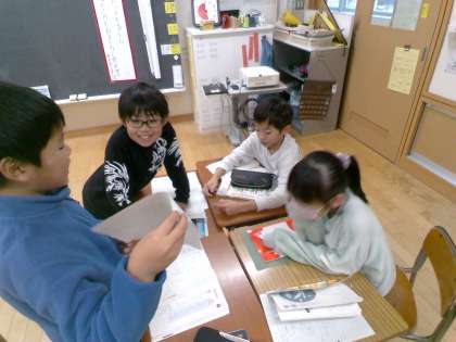 4年1組の5時間目は、国語科の学習でした。「友情のかべ新聞」という学習で、おもしろいと思ったところを絵と文でまとめて発表しました。