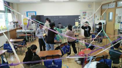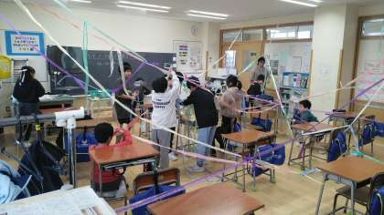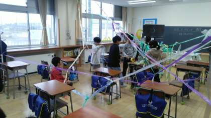 3年生の5時間目は、図画工作科の学習でした。「どんどんつなぐ」という造形遊びで、やりながらたくさんの色や形等のきれいなところや面白いところを見付ける学習です。楽しんで活動するのが一番大事です。