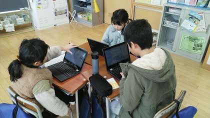 3年生の1時間目は、総合的な学習の時間でした。「射水線」や「倉垣飛行場」等、調べたことをクロームブックでまとめていました。