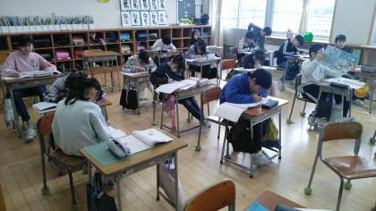 4年1組の1時間目は、算数科の学習でした。「変わり方調べ」の練習問題を解いていました。