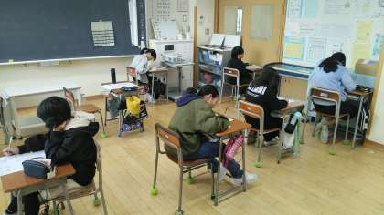 5年生の1時間目は、算数科の学習でした。テストをしていました。