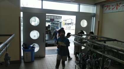 今日は、富山市立図書館の自動車文庫の日です。子供たちは、喜んで本を借りていました。