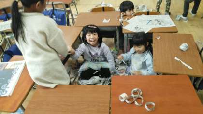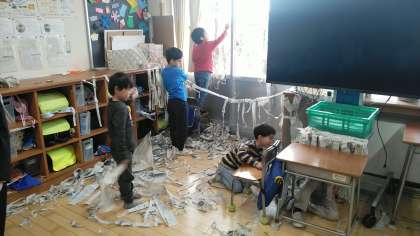 1年生の2時間目も図画工作科の学習でした。ほそほそ新聞も教室いっぱいに広がりました。とても楽しそうに活動していました。