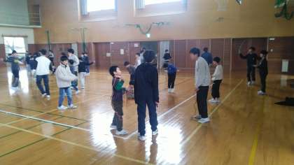 今日のぐんぐんタイムも体育館で縄跳びでした。男子の様子です。