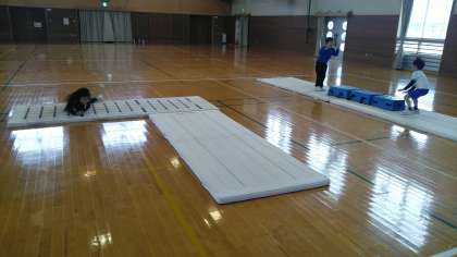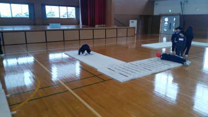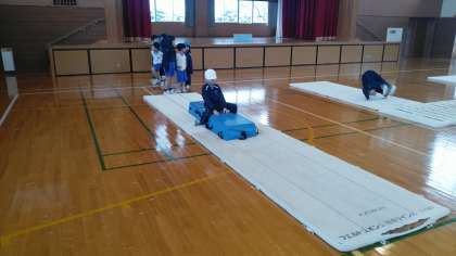 1年生の3時間目は、体育科の学習でした。体育館でマット運動をしていました。