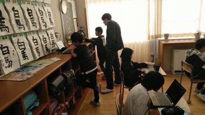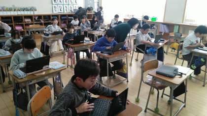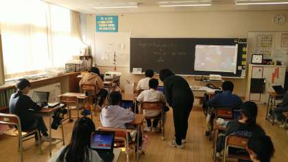 4年1組の5時間目は、外国語活動の時間でした。これまでに習ったことを生かして、ゲームをしながら復習をしていました。