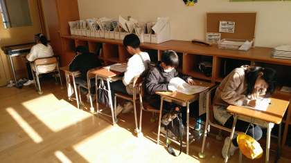 4年2組の5時間目は、社会科の学習でした。「曲がりくねった神通川」のところのテストをしていました。