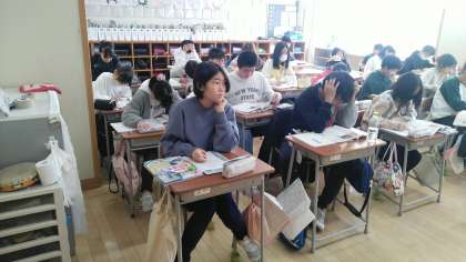 6年生の3時間目は、社会科の学習でした。日本が日清戦争に突き進んでいった時代背景や当時の世界情勢等について考えていました。