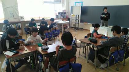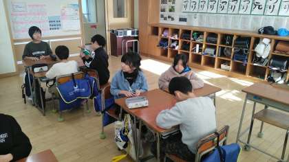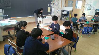 3年生は、5時間目に折り紙で何かをつくっていました。緑色の折り紙を切っていたので、きっともみの木をつくっているのだと思います。