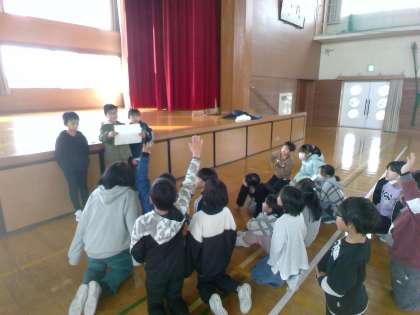 4年1組の3時間目は、学級活動でおたのしみ会をしました。来学期に向けて、もっとなかよくなろうと、クイズ、ゲーム、運動をみんなでしました。
