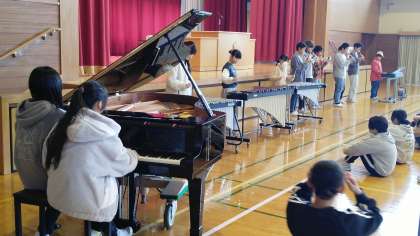 マット運動や合奏をがんばった話で、実際に演技や演奏をしてがんばったことを発表してくれました。