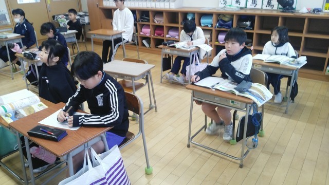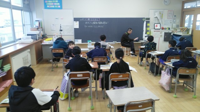 4年1組の1時間目は、理科の学習でした。寒くなったときの生き物の様子について話し合っていました。