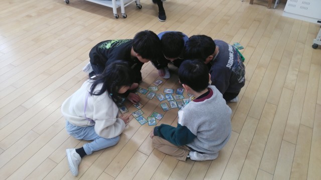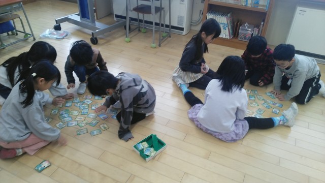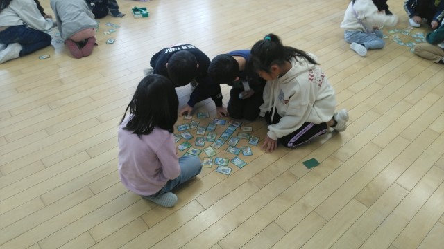 1年生は、1時間目にかるたをしていました。お手つきをしないように気を付けている人もいました。