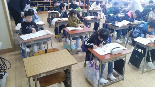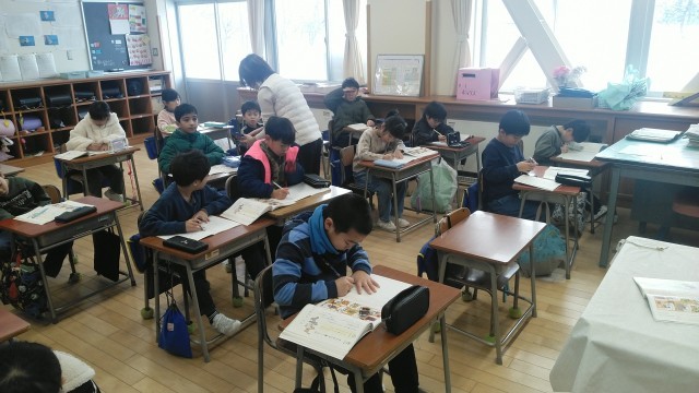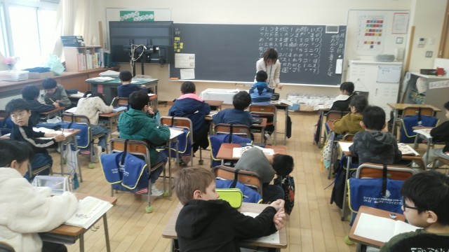 2年生の1時間目は、国語科の学習でした。カタカナがたくさん入った文章を考えていました。
