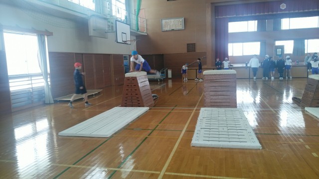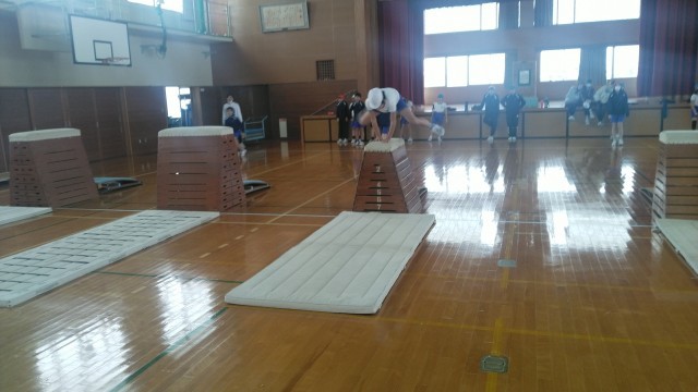 6年生の5時間目は、体育科の学習でした。体育館で跳び箱をしていました。